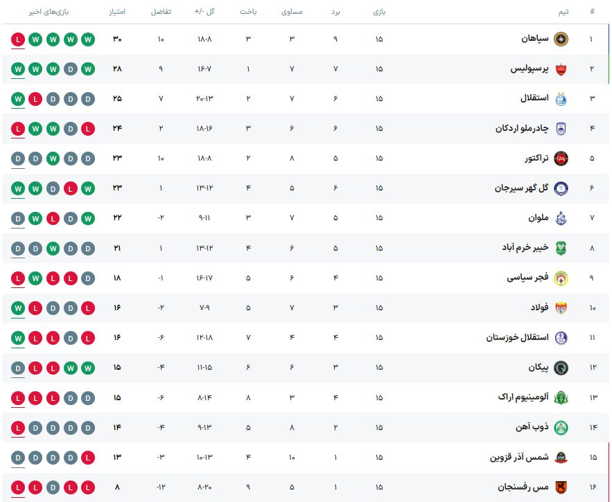 با این نتیجه نوار 8 هفته متوالی پیروزی سپاهانی‌ها پاره شد و با ۳۰ امتیاز در پایان نیم فصل اول در صدرجدول قرار گرفت. استقلال نیز با ۲۵ امتیاز در جایگاه سوم جدول و در فاصله ۵ امتیازی صدرجدول قرار گرفت.