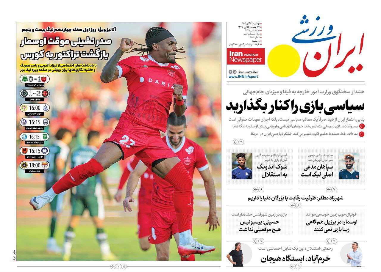 پرسپولیس نیوز: نیمصفحه نخست روزنامههای ورزشی چاپ صبح کشور روی کیوسکهای مطبوعاتی را ورق بزنید: