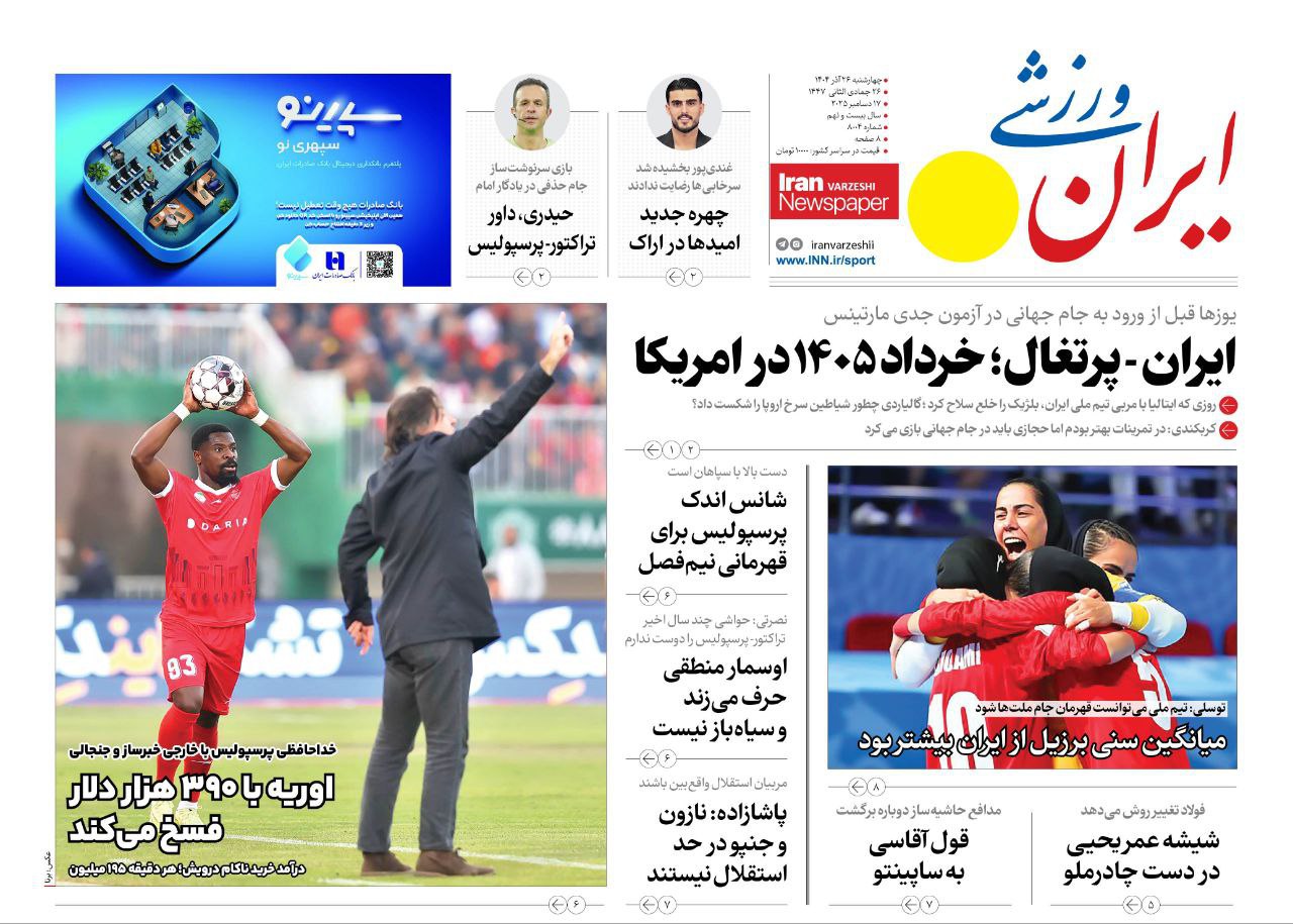 پرسپولیس نیوز: نیمصفحه نخست روزنامههای ورزشی چاپ صبح کشور روی کیوسکهای مطبوعاتی را ورق بزنید: