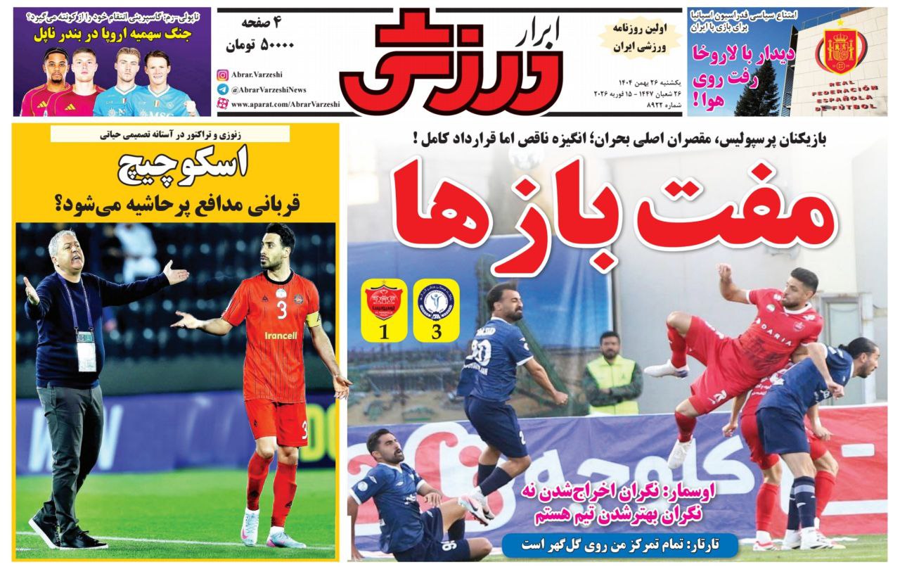 نیم‌صفحه نخست روزنامه‌های ورزشی چاپ صبح کشور روی کیوسک‌های مطبوعاتی را ورق بزنید: