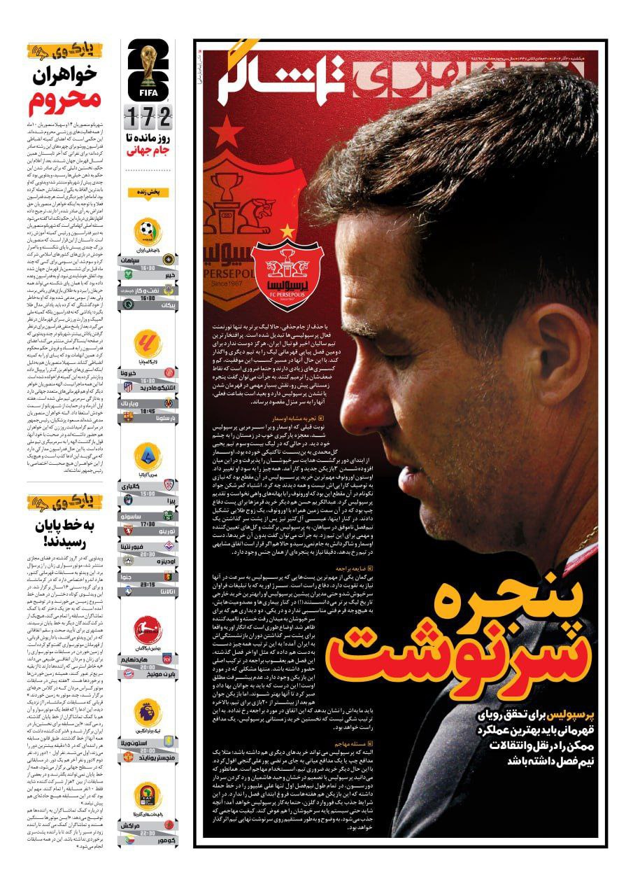 پرسپولیس نیوز: نیمصفحه نخست روزنامههای ورزشی چاپ صبح کشور روی کیوسکهای مطبوعاتی را ورق بزنید: