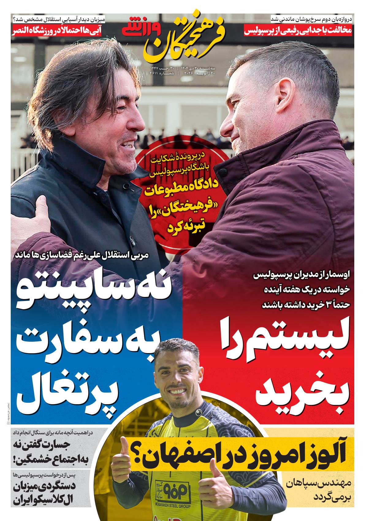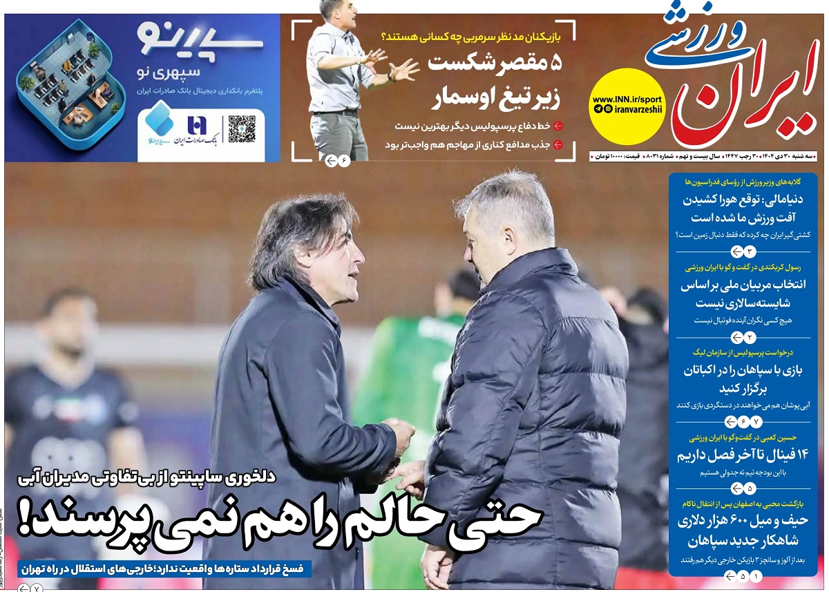 نیم‌صفحه نخست روزنامه‌های ورزشی چاپ صبح کشور روی کیوسک‌های مطبوعاتی را ورق بزنید: