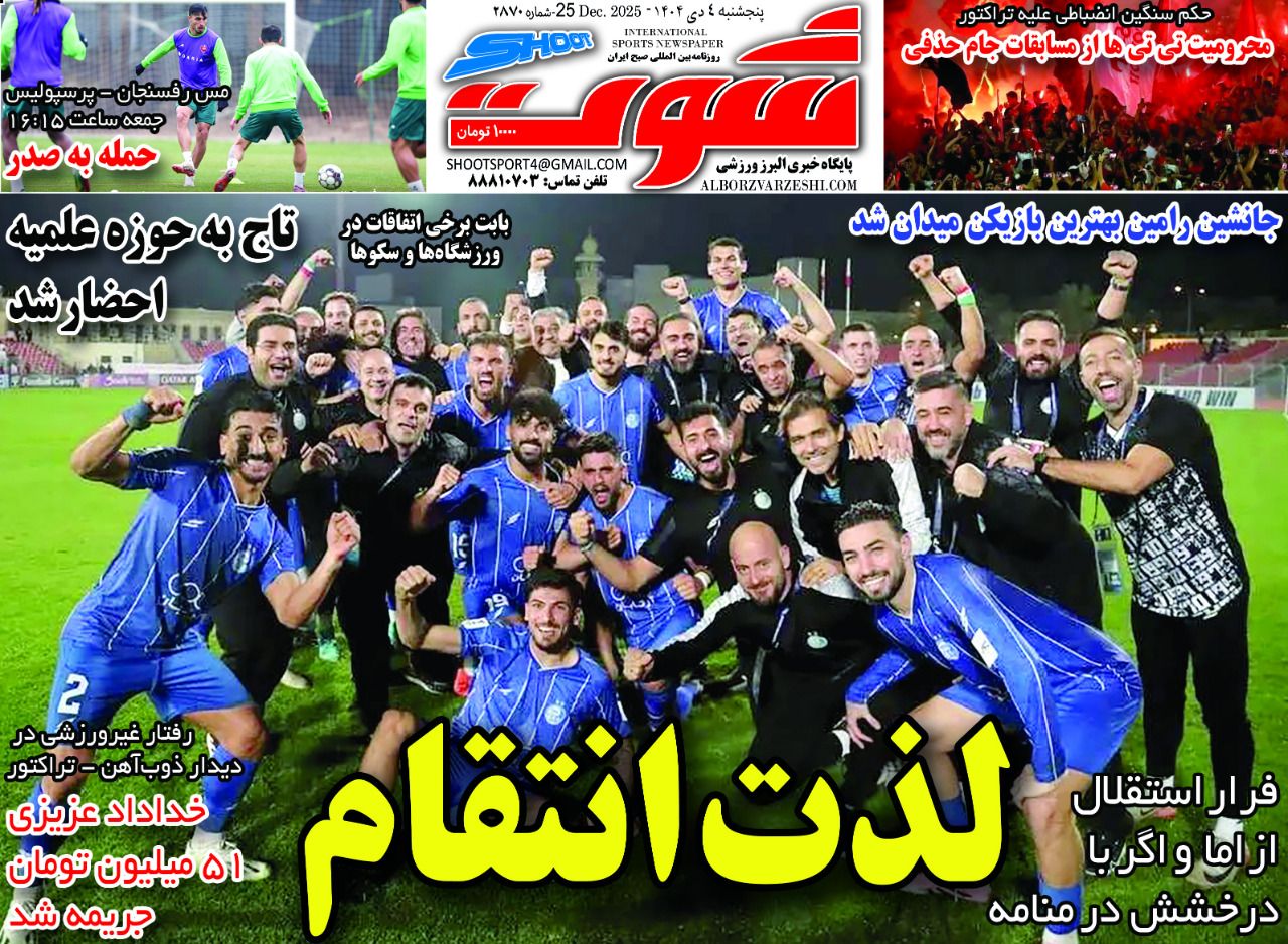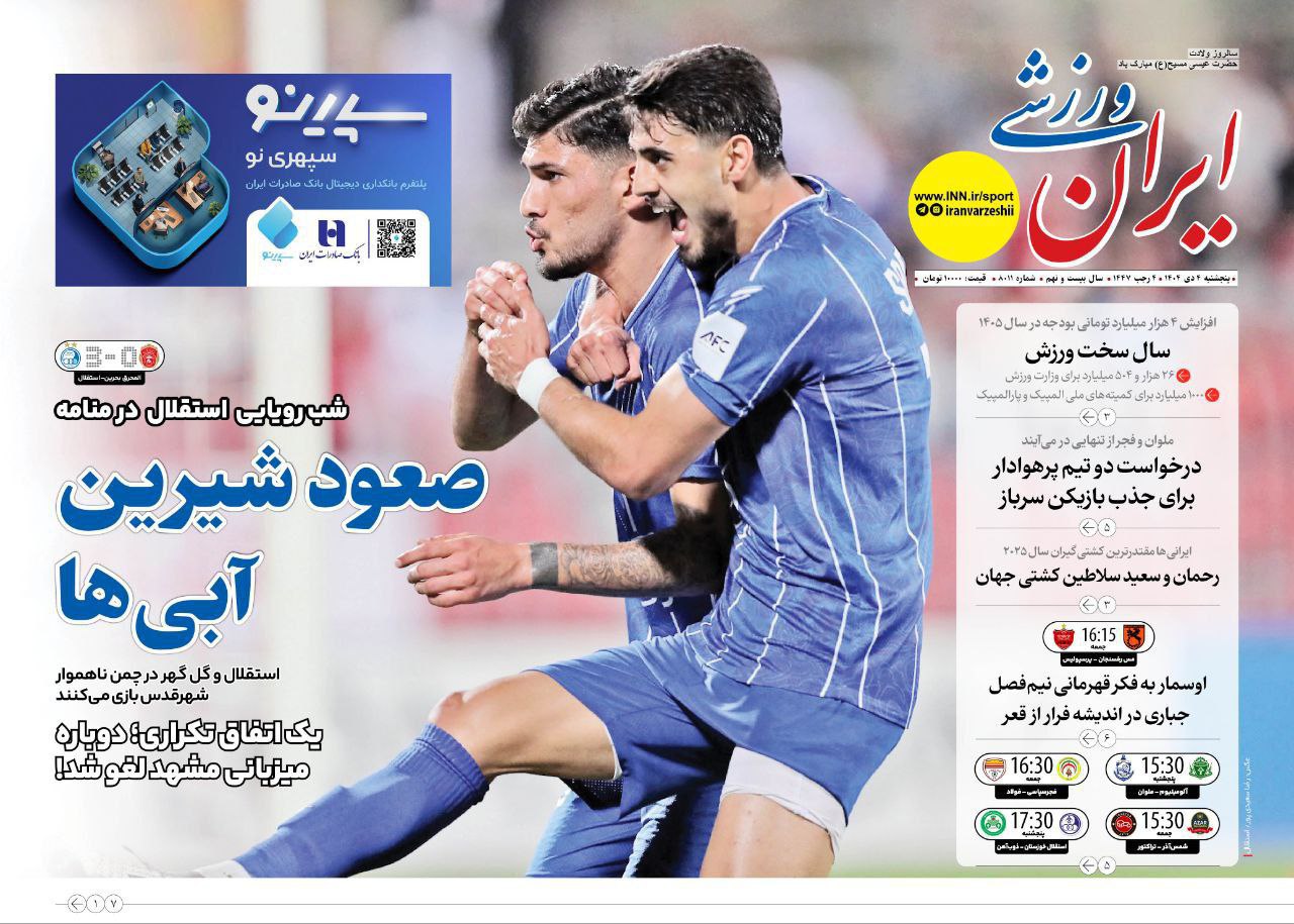 پرسپولیس نیوز: نیمصفحه نخست روزنامههای ورزشی چاپ صبح کشور روی کیوسکهای مطبوعاتی را ورق بزنید: