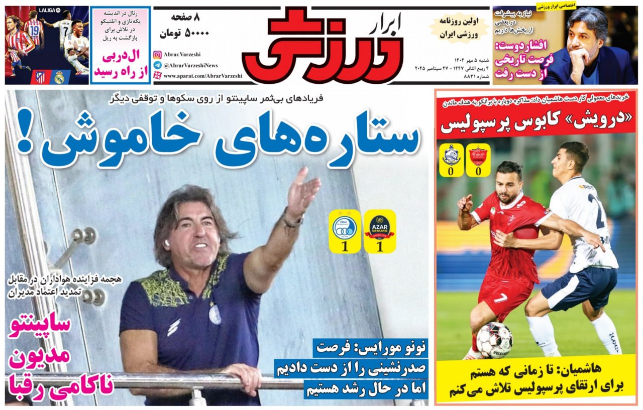 نیمصفحه نخست روزنامههای ورزشی چاپ صبح کشور روی کیوسکهای مطبوعاتی را ورق بزنید: