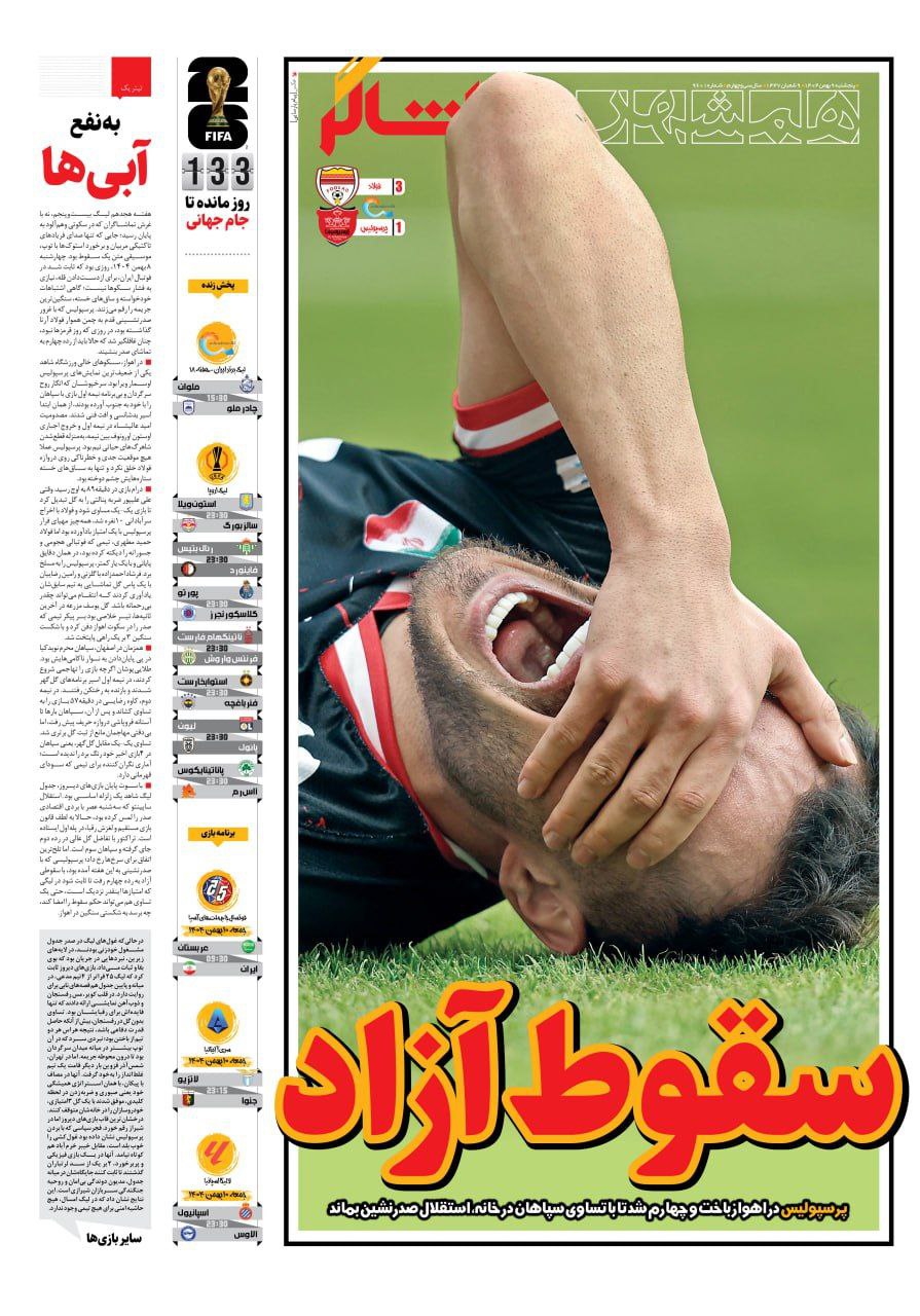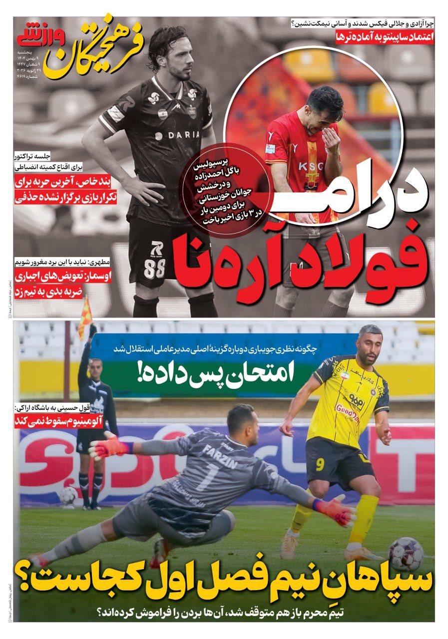نیم‌صفحه نخست روزنامه‌های ورزشی چاپ صبح کشور روی کیوسک‌های مطبوعاتی را ورق بزنید: