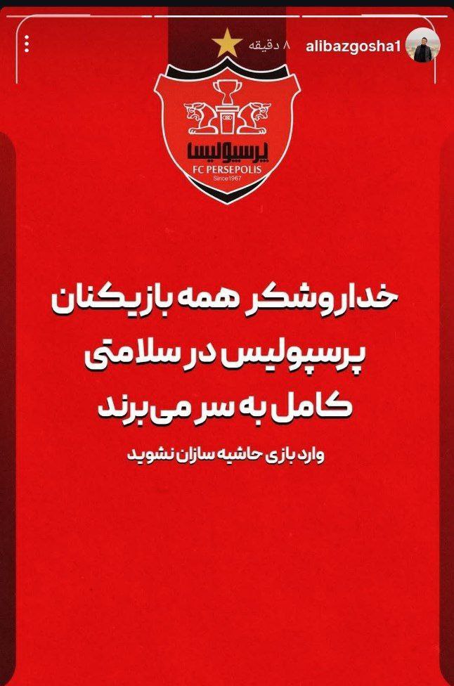 اما بازگشا سخنگوی باشگاه پرسپولیس با انتشار متنی این خبر را تکذیب کرد و نوشت: خدا را شکر همه بازیکنان پرسپولیس در سلامتی کامل به سر می برند. وارد بازی حاشیه سازان نشوید.